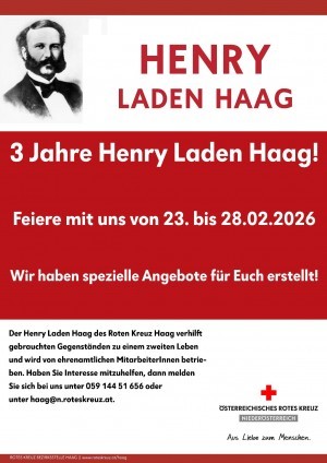 Wir haben spezielle Angebote für euch erstellt!Der Henry Laden Haag des Roten Kreuz Haag verhilft gebrauchten Gegenständen zu einem zweiten Leben und wird von ehrenamtlichen MitarbeiterInnen betrieb...