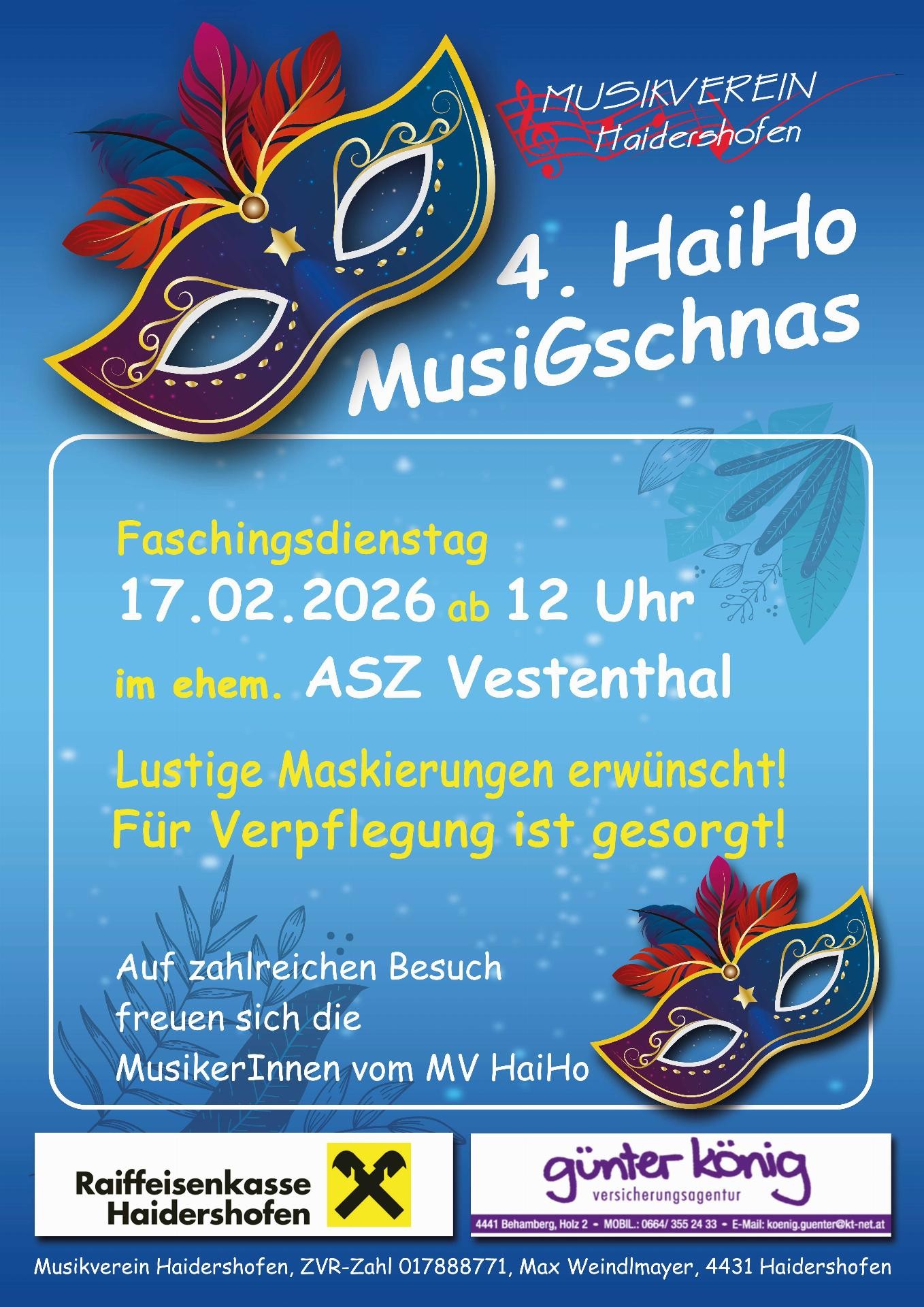 Lustige Maskierungen erwünscht! Für Verpflegung ist gesorgt!Faschingsdienstag mit dem MV HaiHo