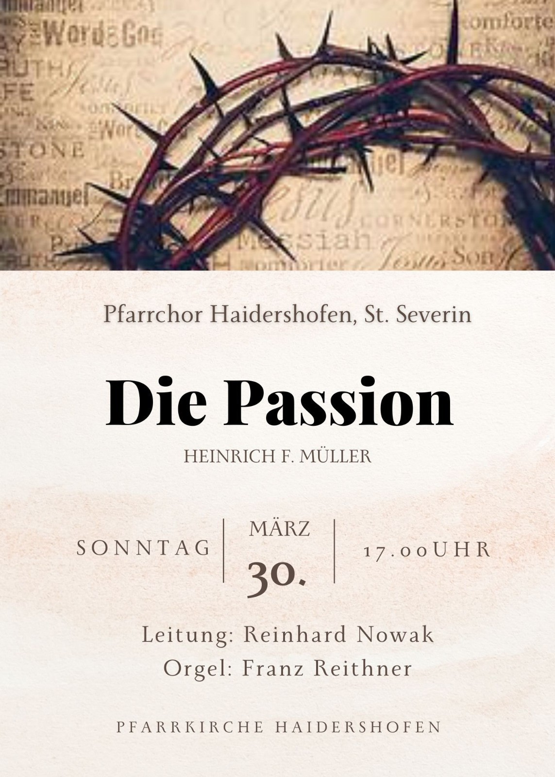 Sonntag, 30. März 2025, 17.00 Uhr in der Pfarrkirche Haidershofen