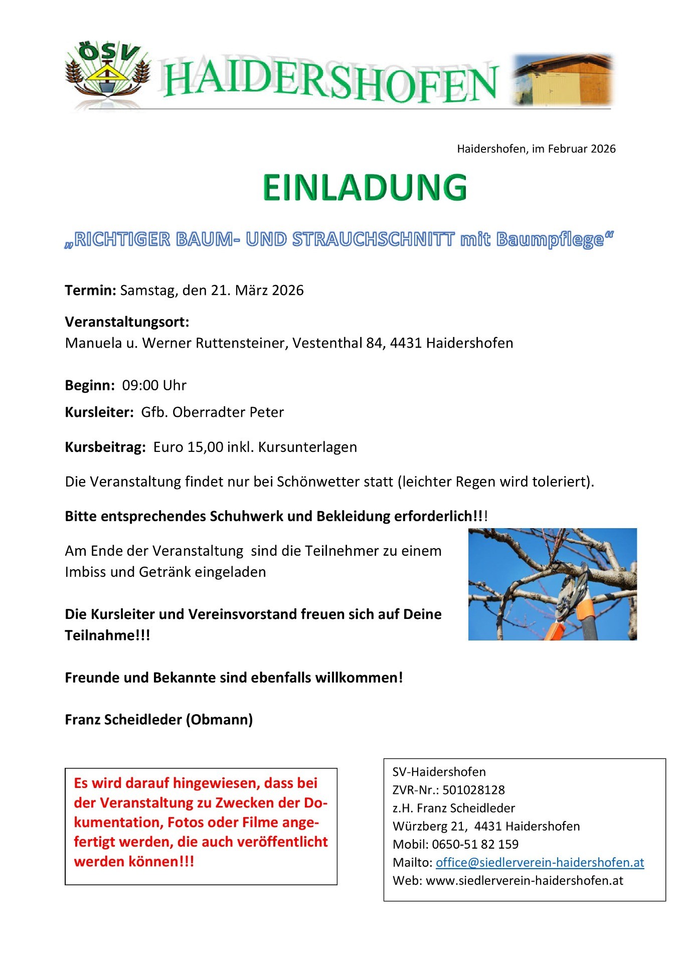 Einladung "Richtiger Baum-und Strauchschnitt mit Baumpflege"