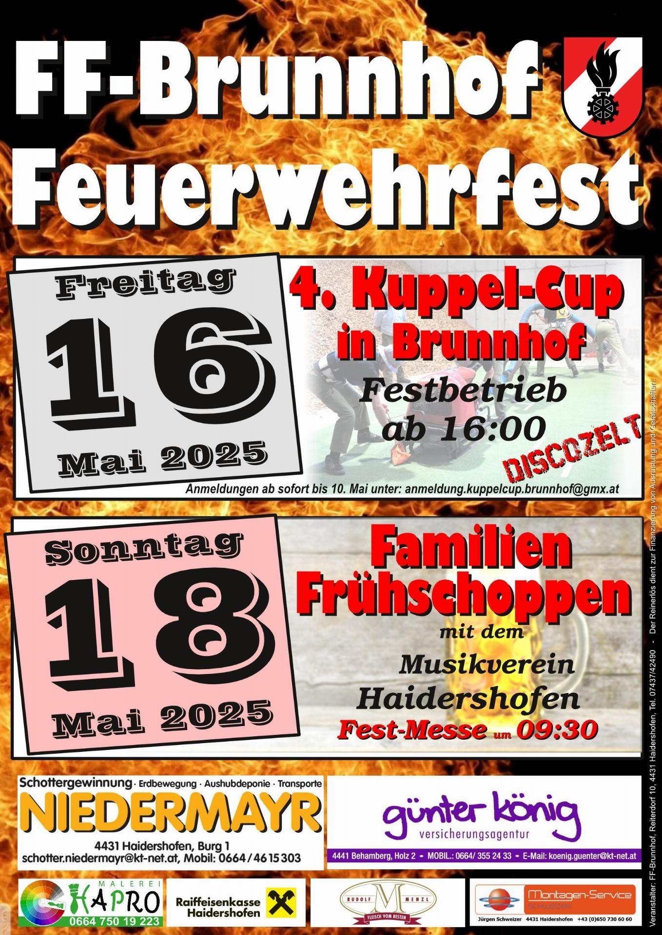 Die FF-Brunnhof lädt zum traditionellen Frühschoppen ein. Neben kulinarischen Leckereien aus der Umgebung gibt es auch musikalischen Genuss durch den Musikverein Haidershofen. Für unsere Kleinen steht wieder eine Hüpfburg zur Verfügung. Die FF-Brunnhof freut sich auf Euren Kommen.Familien-Frühschoppen in Brunnhof