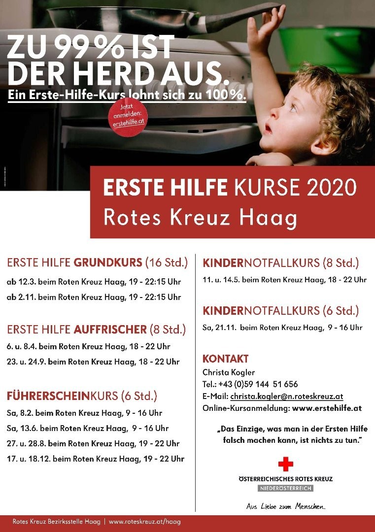 27. und 28.8.2020 beim Roten Kreuz Haag, 19.00 - 22.00 Uhr