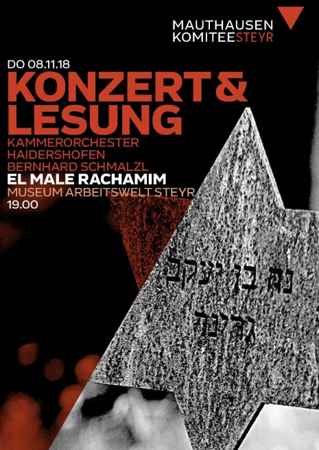 „El male Rachamim“ – Gott voller Erbarmen, das sind die Anfangsworte eines jüdischen Gebetes, welches nach alter jüdischer Tradition bei Bestattungen und Todestagen, aber auch zum Gedenken an die Opfer des Holocaust vorgetragen wird. Im Gedenken an das Novemberpogrom vor 80 Jahren erinnert das Kammerorchester Haidershofen unter der musikalischen Leitung von Professor Ernst Kronsteiner an das Leben und das Schicksal der jüdischen Kultusgemeinde in Steyr. Bernhard Schmalzl wird dazu ausgewählte Texte lesen, die über die Ereignisse im November 1938 berichten. Auf dem Programm stehen Werke von Samuel Adler, Ney Rosauro, Benjamin Britten und Ferenc Javori. Der Musiker Karol Heimberger aus Haidershofen überarbeitete für diesen Jahrestag eine eigene Komposition. Solist auf der Marimba ist der junge Ennser Michael Spiekermann. Musik Kammerorchester Haidershofen Leitung Prof. Ernst Kronsteiner Lesung Bernhard Schmalzl EINTRITT Freiwillige SpendenKonzert und Lesung mit dem Kammerorchester Haidershofen und Bernhard Schmalzel
