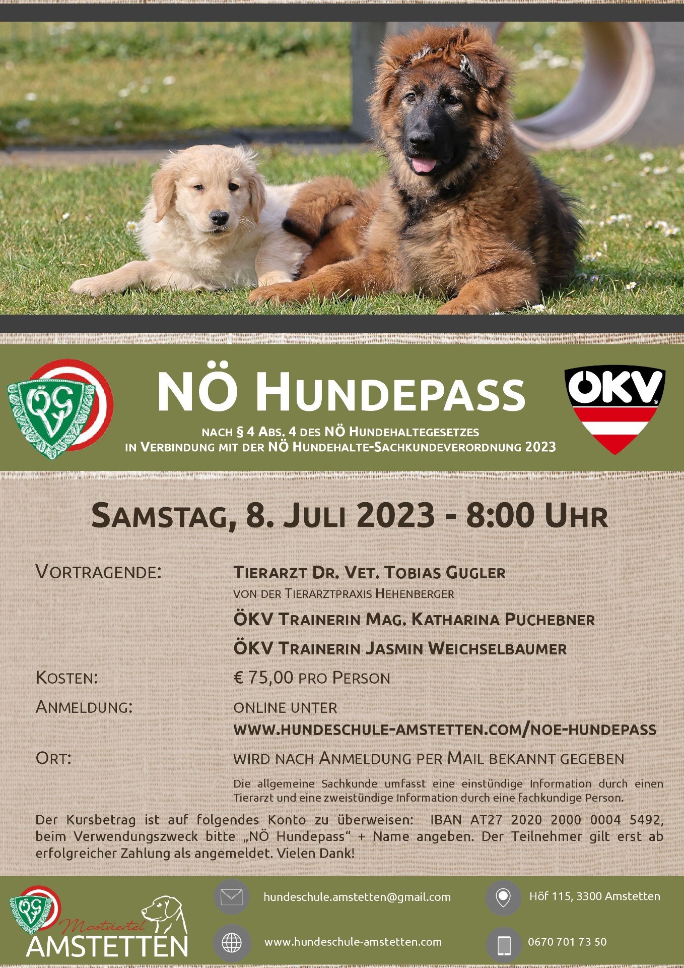 Anmeldung: online unter www.hundeschule-amstetten.com/noe-hundepass