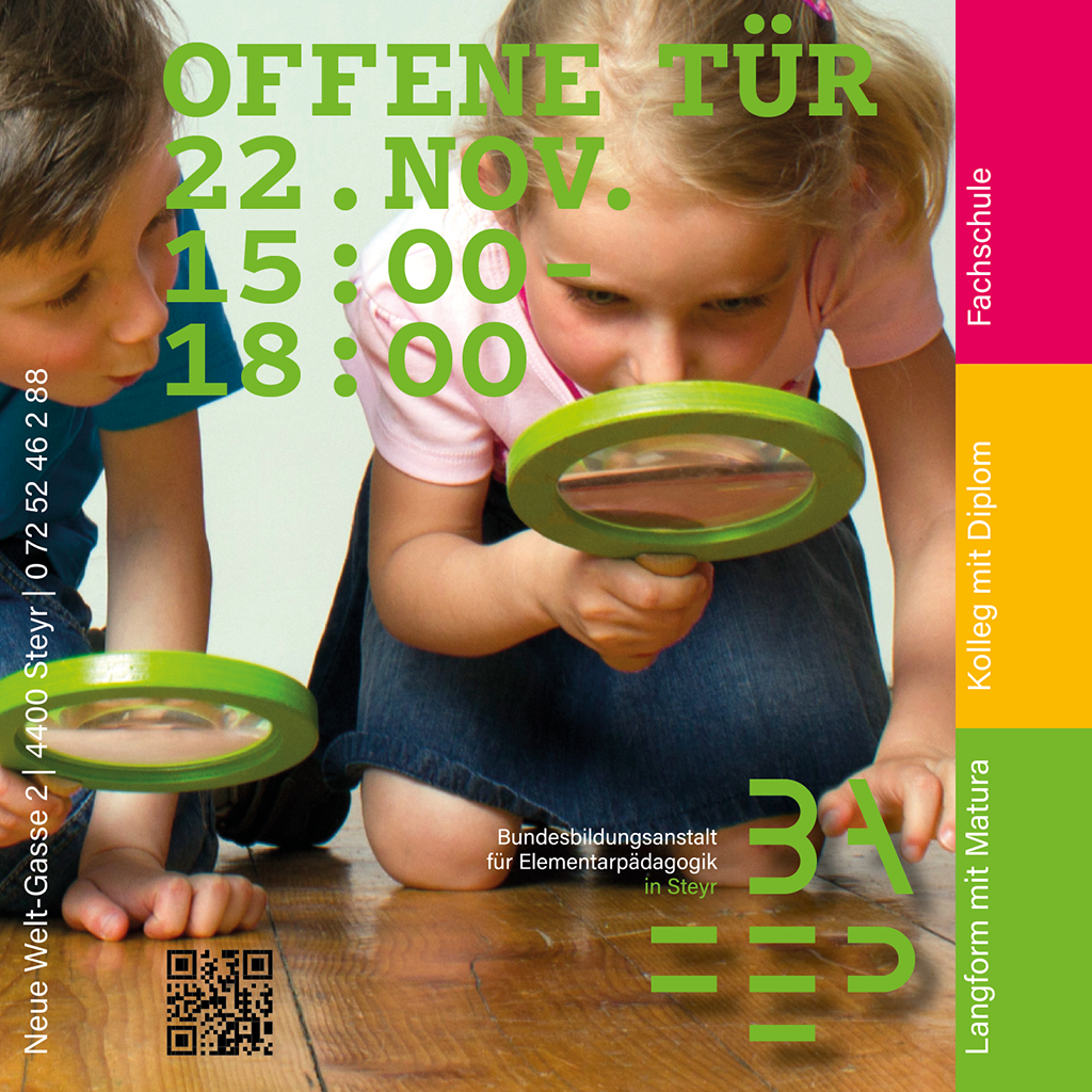 Lerne die Bildungsanstalt für Elementarpädagogik in Steyr, die Fachschule und das Kolleg kennen.