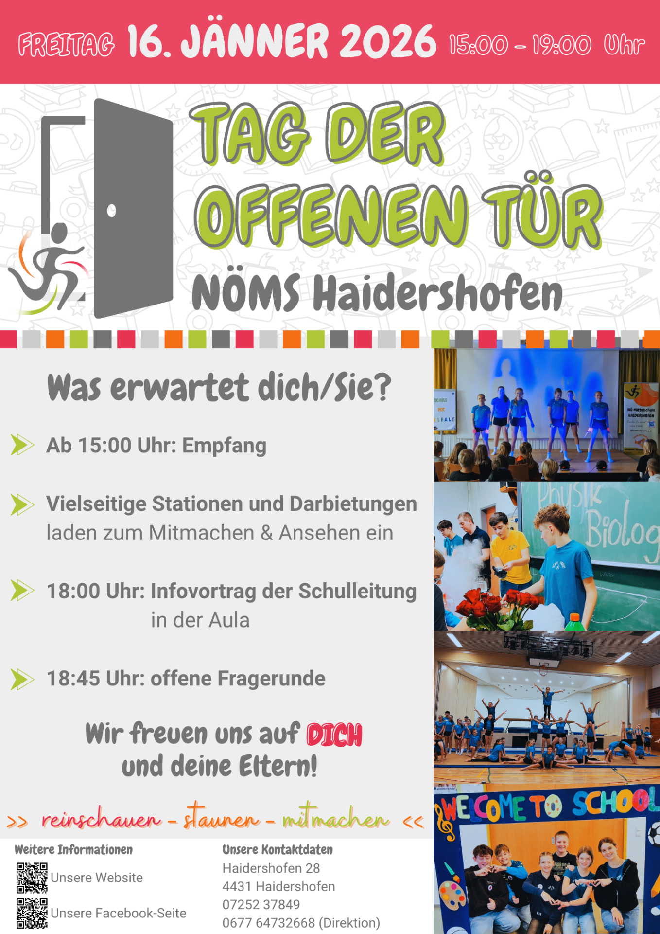 - 18:00 Uhr: Infovortrag der Schulleitung in der Aula