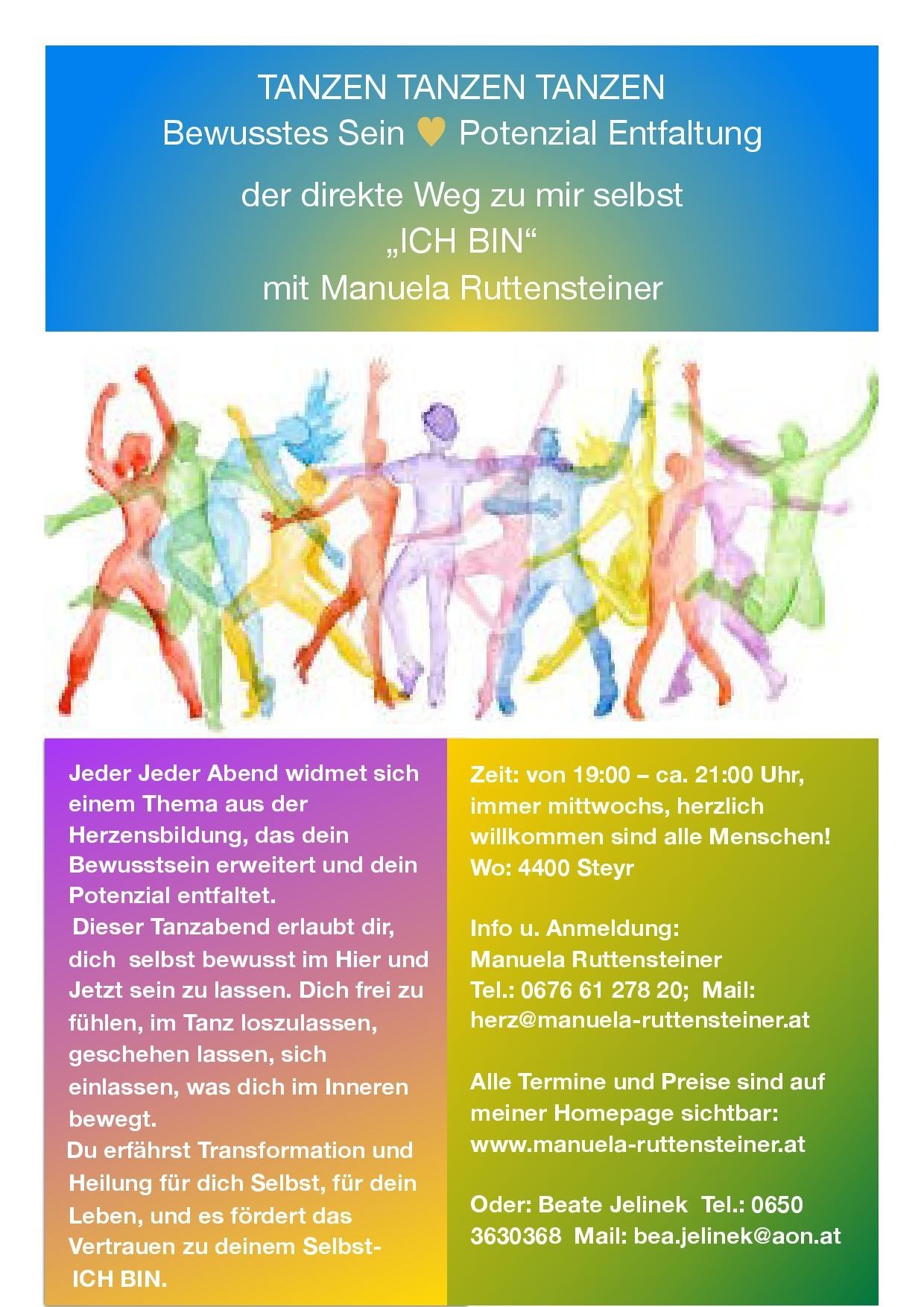 TANZEN TANZEN TANZEN Bewusstes Sein & Potenzial Entfaltung der direkte Weg zu mir selbst-"ICH BIN" mit Manuela Ruttensteiner
