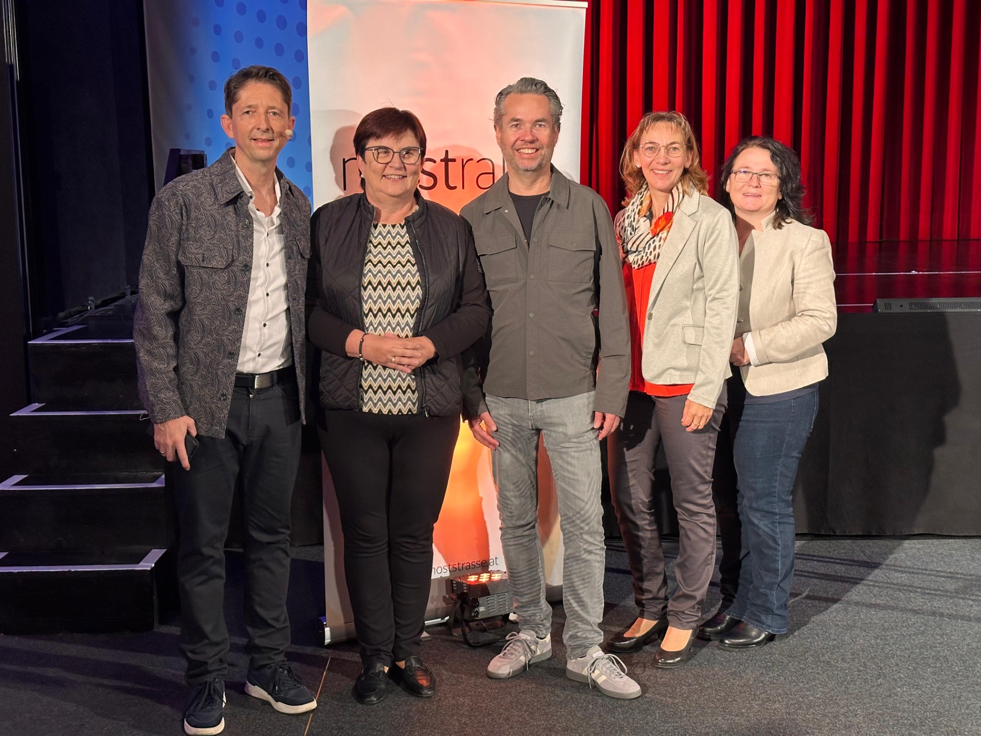Pressefoto1: v.l.n.r. P.A. Straubinger, Obfrau LEADER-Region Tourismusverband Moststrasse Michaela Hinterholzer, Intendant Herbsttage Blindenmarkt Michael Garschall, Vizebürgermeisterin Blindenmarkt Anita Pitzl, Gemeinderätin und Sozialkoordinatorin Blindenmarkt Martina Gaind