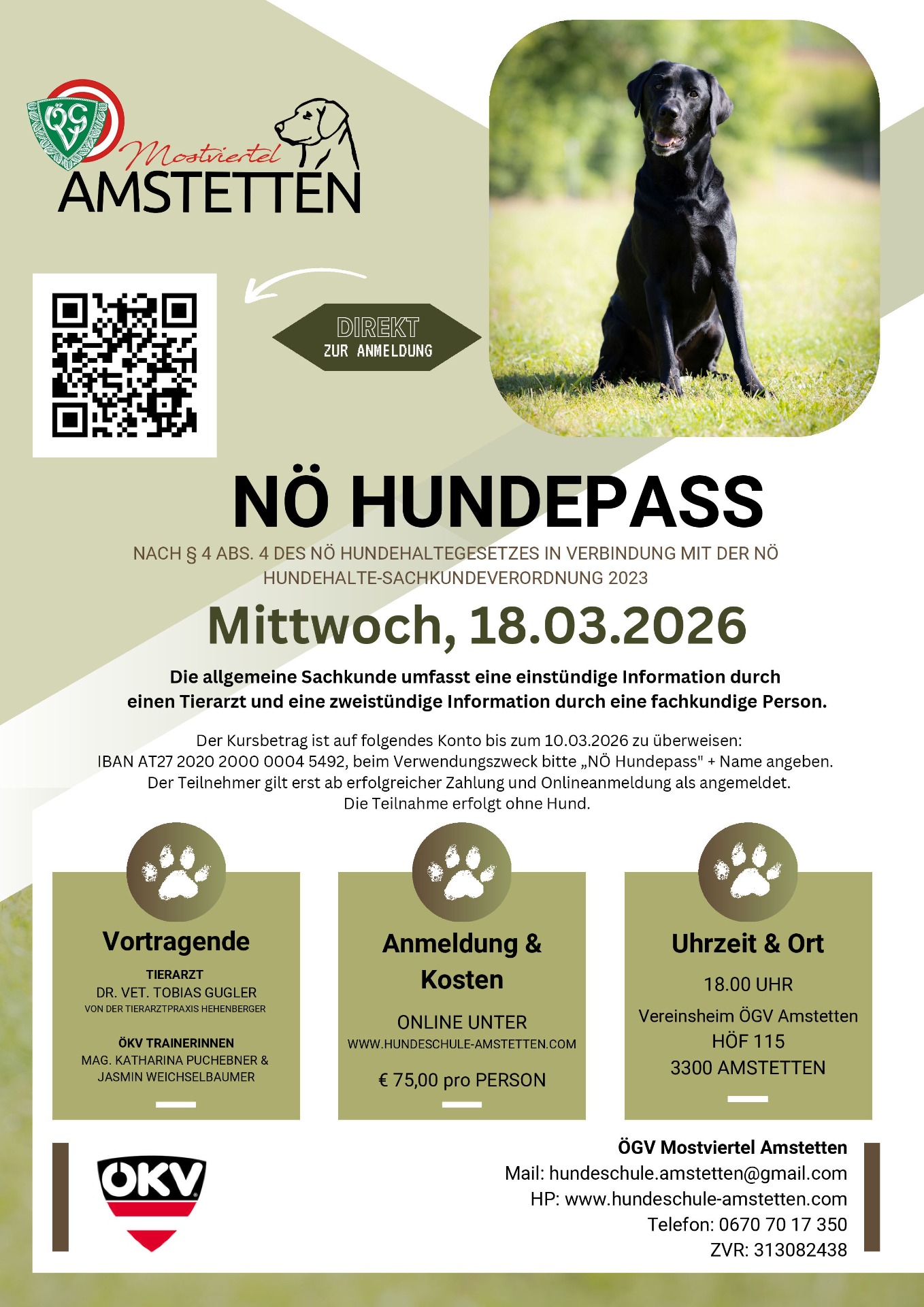 NACH § 4 ABS. 4 DES NÖ HUNDEHALTEGESETZES IN VERBINDUNG MIT DER NÖ HUNDEHALTE-SACHKUNDEVERORDNUNG 2023