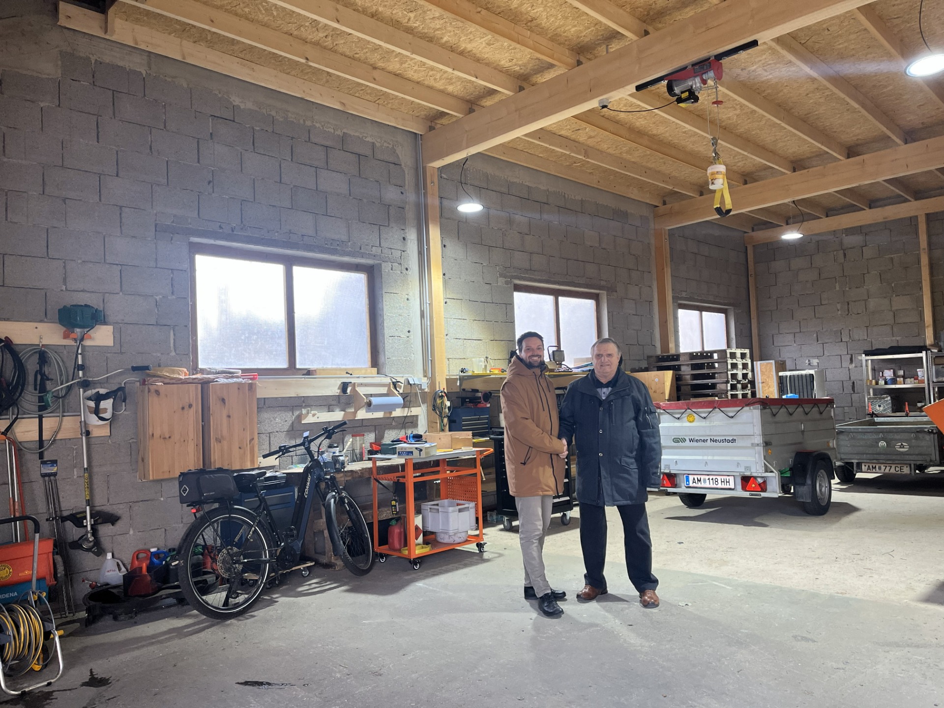Bildtext: Bürgermeister Michael Strasser und Obmann Franz Scheidleder im neuen Heim