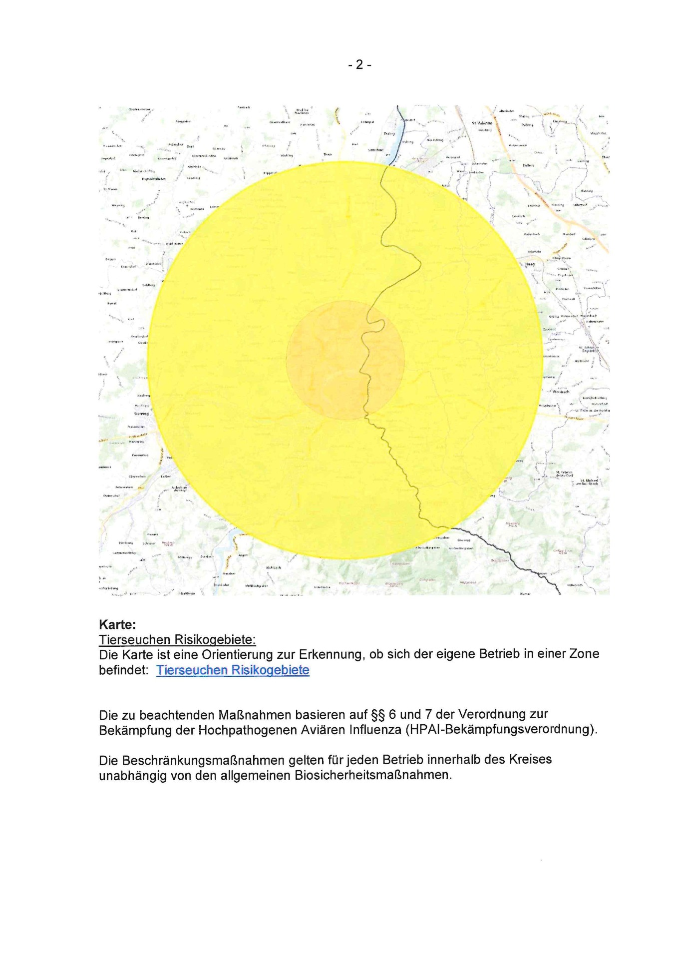 Mit Kundmachung zur Festlegung eines HPAI-Risikogebietes vom 19.11.2025, Geschäftszahl: 2025-0.946.129, hat das Bundesministerium für Soziales, Gesundheit, Pflege und Konsumentenschutz in Niederösterreich im Verwaltungsbezirk Amstetten