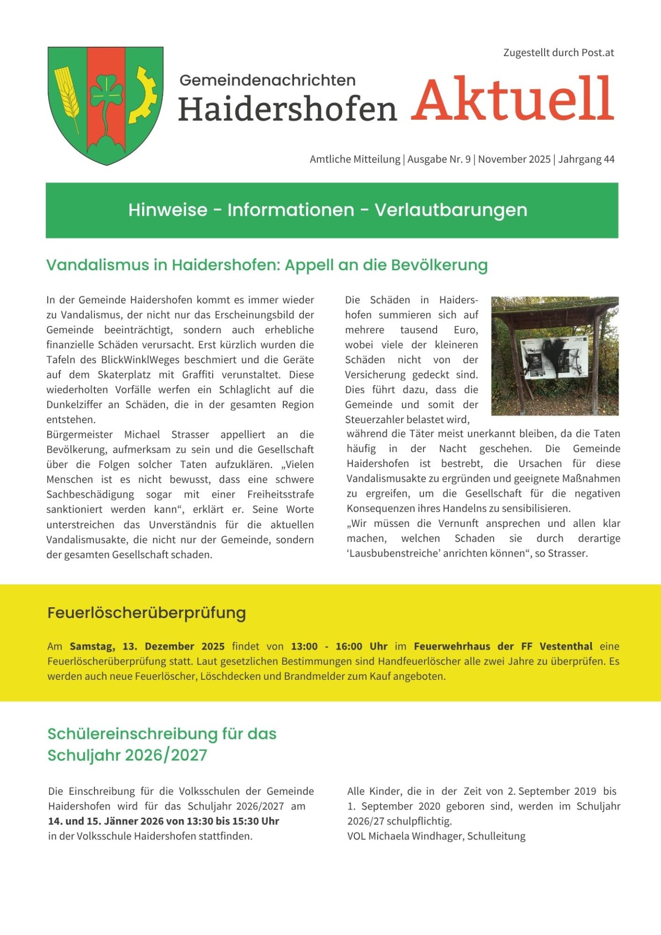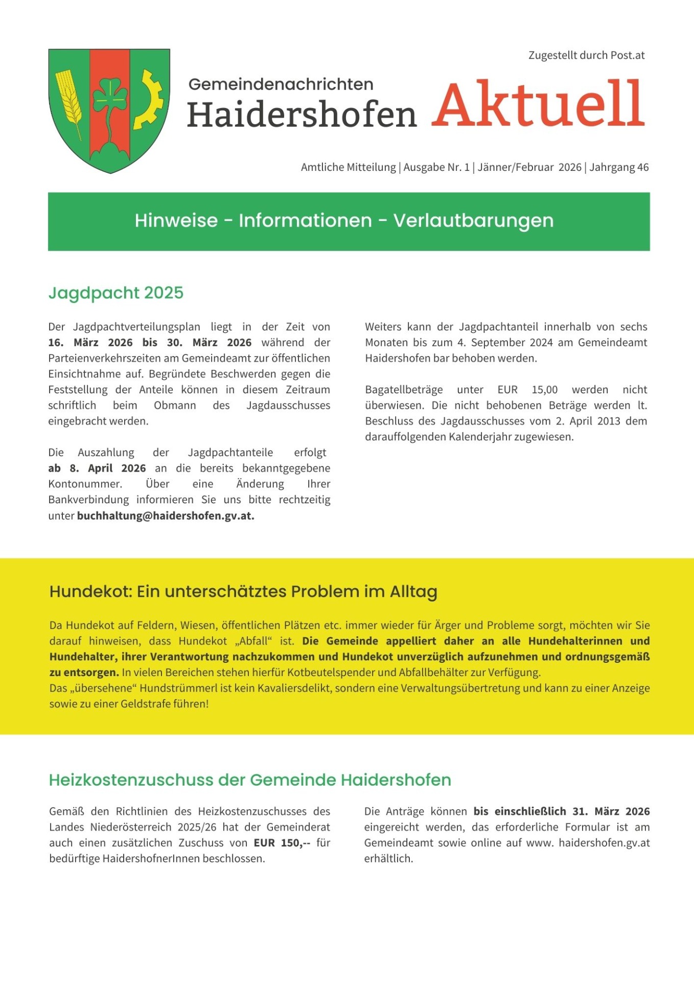 Die neue Ausgabe von "Haidershofen Aktuell" finden Sie