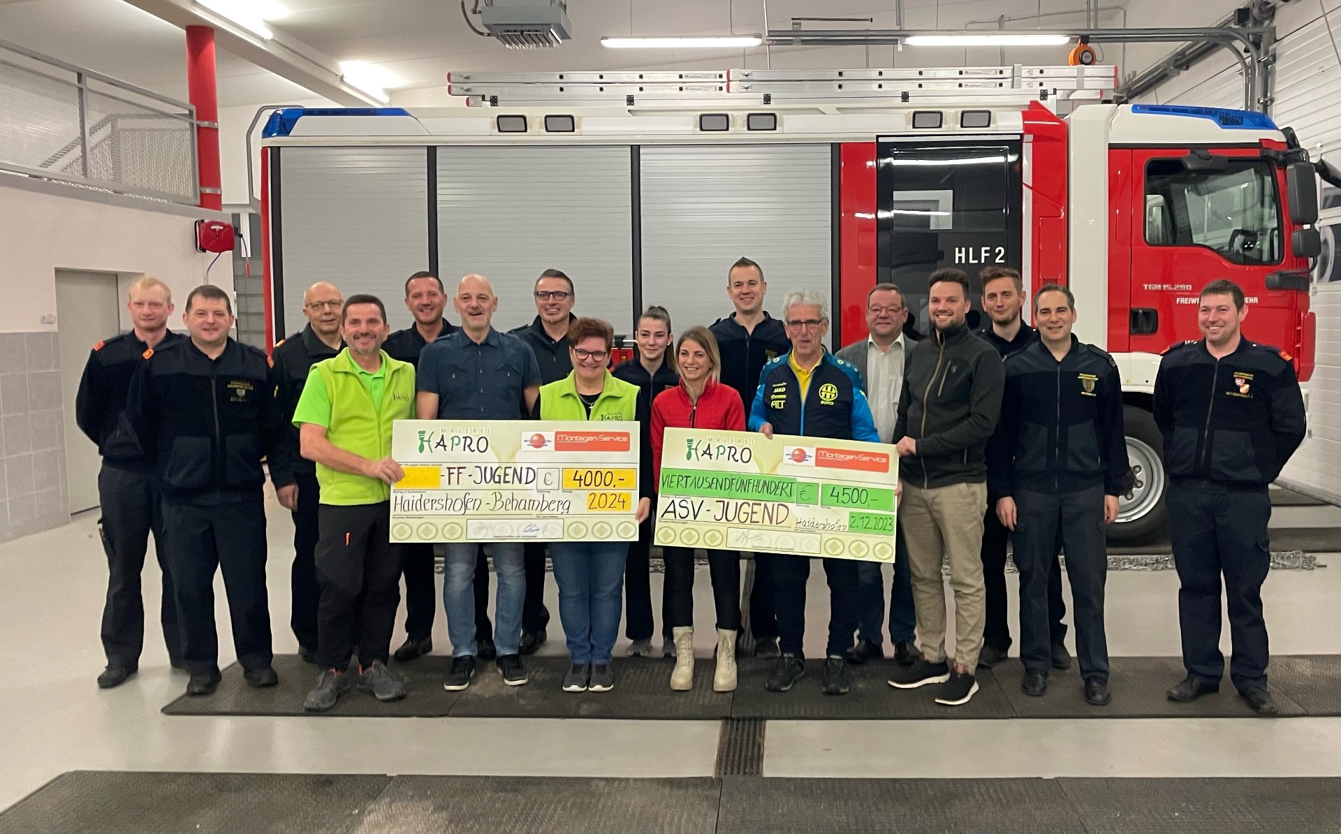 Heuer haben die beiden Firmen Hapro und Montage-Service Schweizer für die Feuerwehrjugenden Behamberg, Brunnhof, Haidershofen, Vestenthal und Wachtberg, den ASV Raika Behamberg Haidershofen und den Tischtennisverein einen Benefizpunsch veranstaltet. Die Veranstaltung war ein voller Erfolg und es konnte wieder eine großzügige Spende für die Jugendverein eingefahren werden. Insgesamt kamen 9.000 Euro zusammen. Vergangenen Freitag wurde Feuerwehrjugenden Behamberg, Brunnhof, Haidershofen, Vestenthal und Wachtberg ihr Anteil in Form eines Schecks von gesamt 4.000 Euro überreicht.