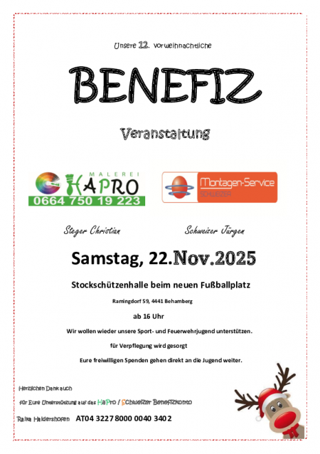 Auch 2024 haben die beiden Firmen Hapro und Montage-Service Schweizer für die Feuerwehrjugenden Behamberg, Brunnhof, Haidershofen, Vestenthal und Wachtberg, den ASV Raika Behamberg Haidersho...
